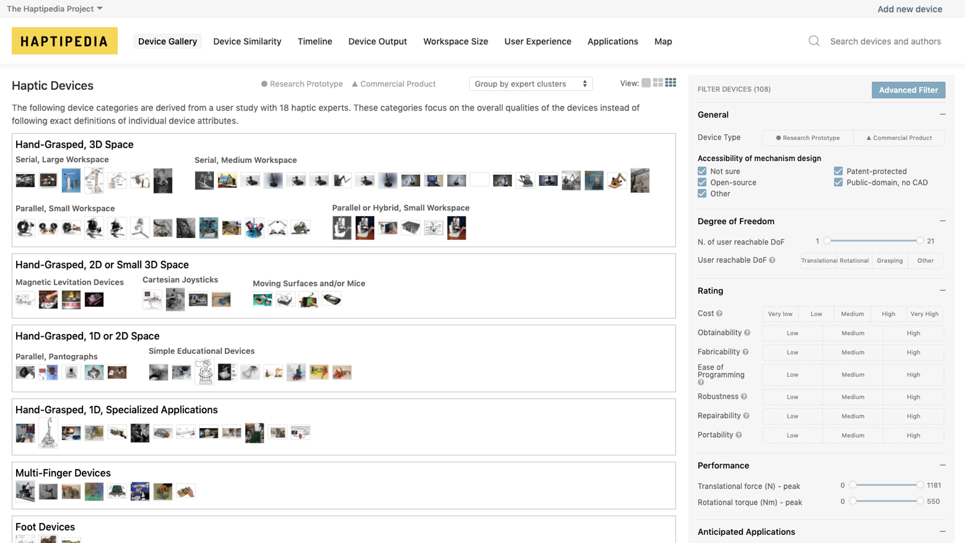 Haptipedia: An interactive database for selecting, ideating, and learning about grounded force-feedback devices