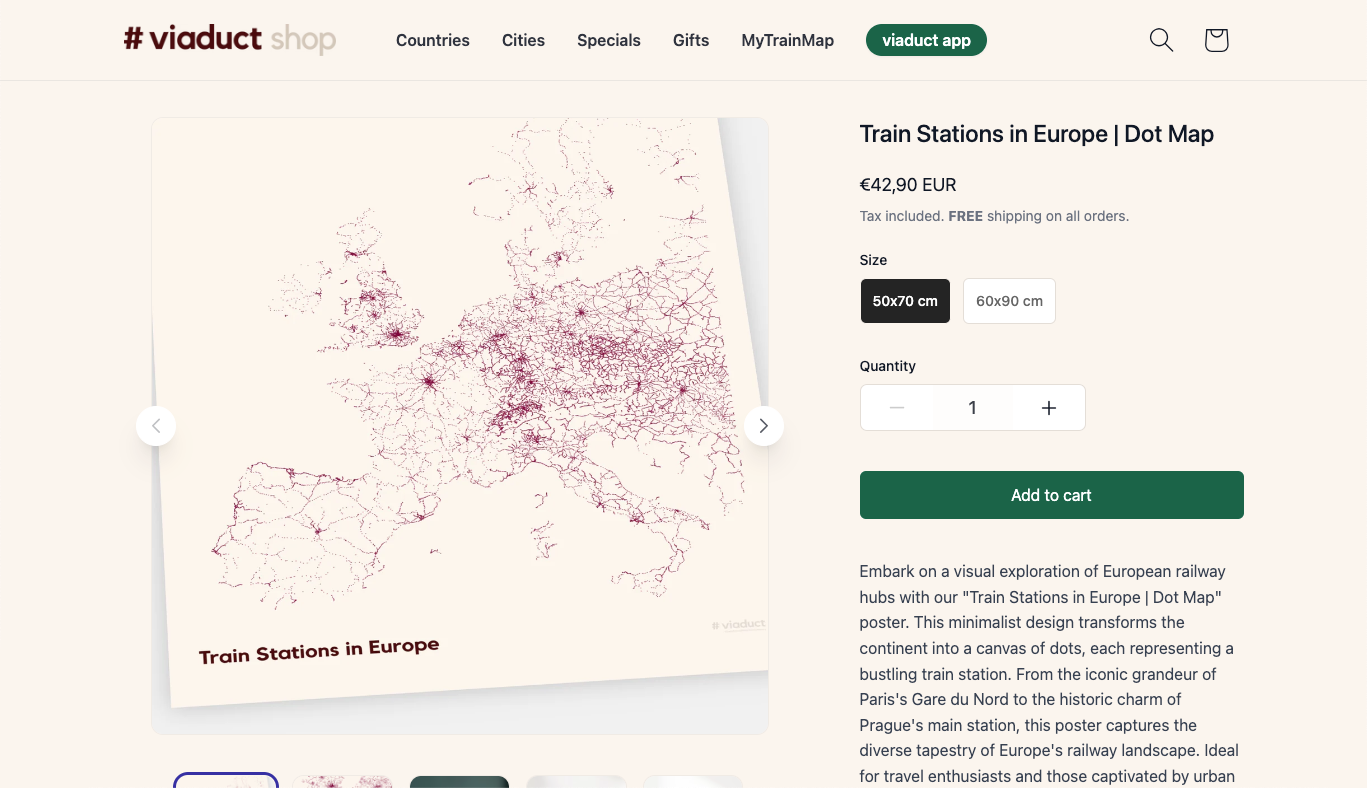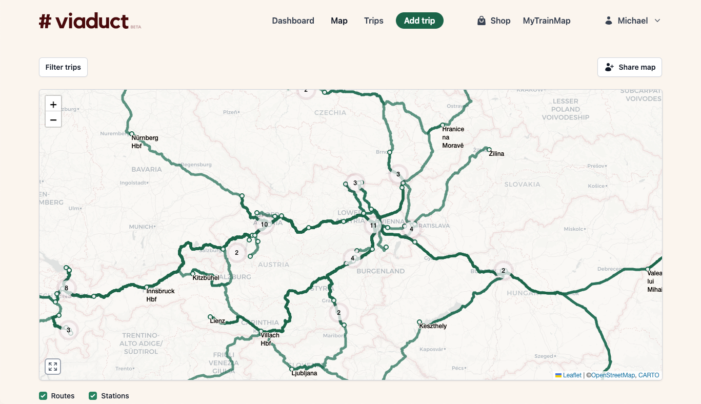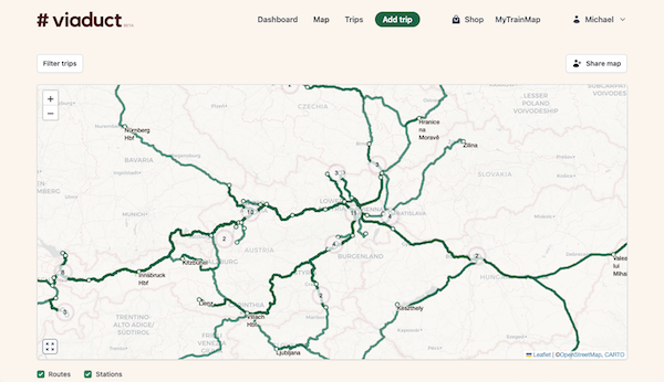 I co-founded viaduct together with Florian Pühringer. We share a passion for train travel and data-driven maps and were missing a tool that would allow us to document our train journeys. Recognizing this gap, we set out to create our own solution. viaduct is a web application that offers a unique platform for train enthusiasts to freely record their train journeys, from everyday commutes to epic cross-country adventures. But viaduct is much more than a train diary. We sell unique prints of railway networks from around the world. For a more personalized print, users can commission their own MyTrainMap, a custom visual of their recorded trips.