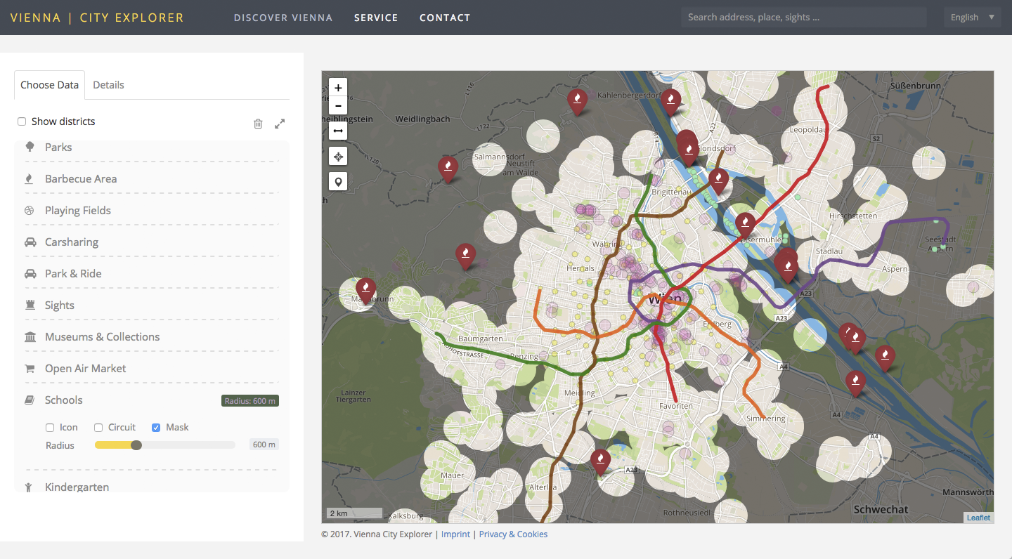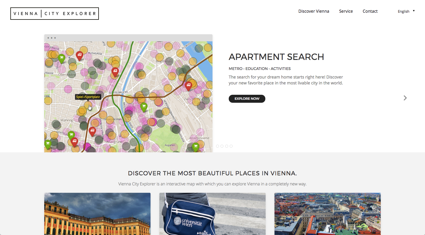The Vienna City Explorer is an interactive visualization that displays geo-related open data from Vienna.